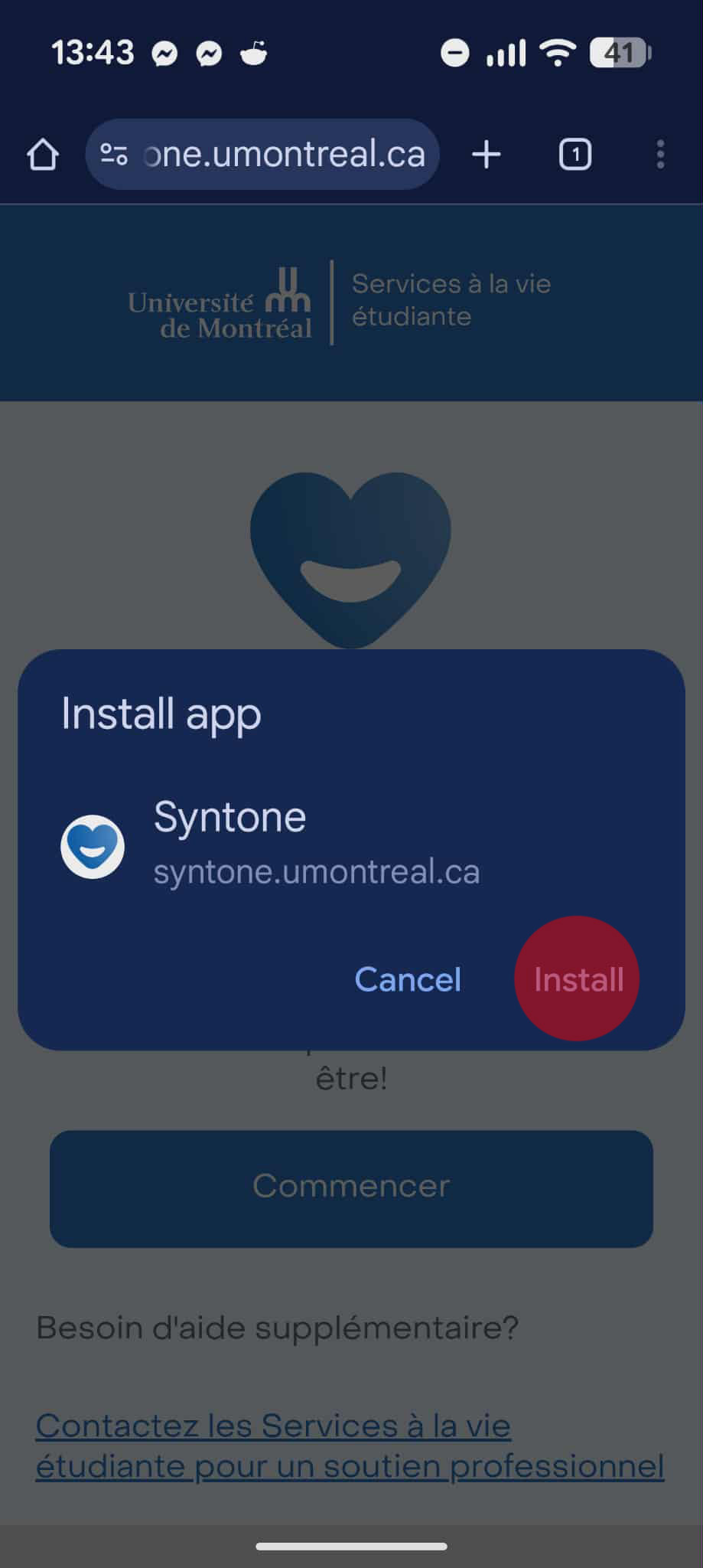 Dans le menu déroulant, sélectionnez "Installer l'application".